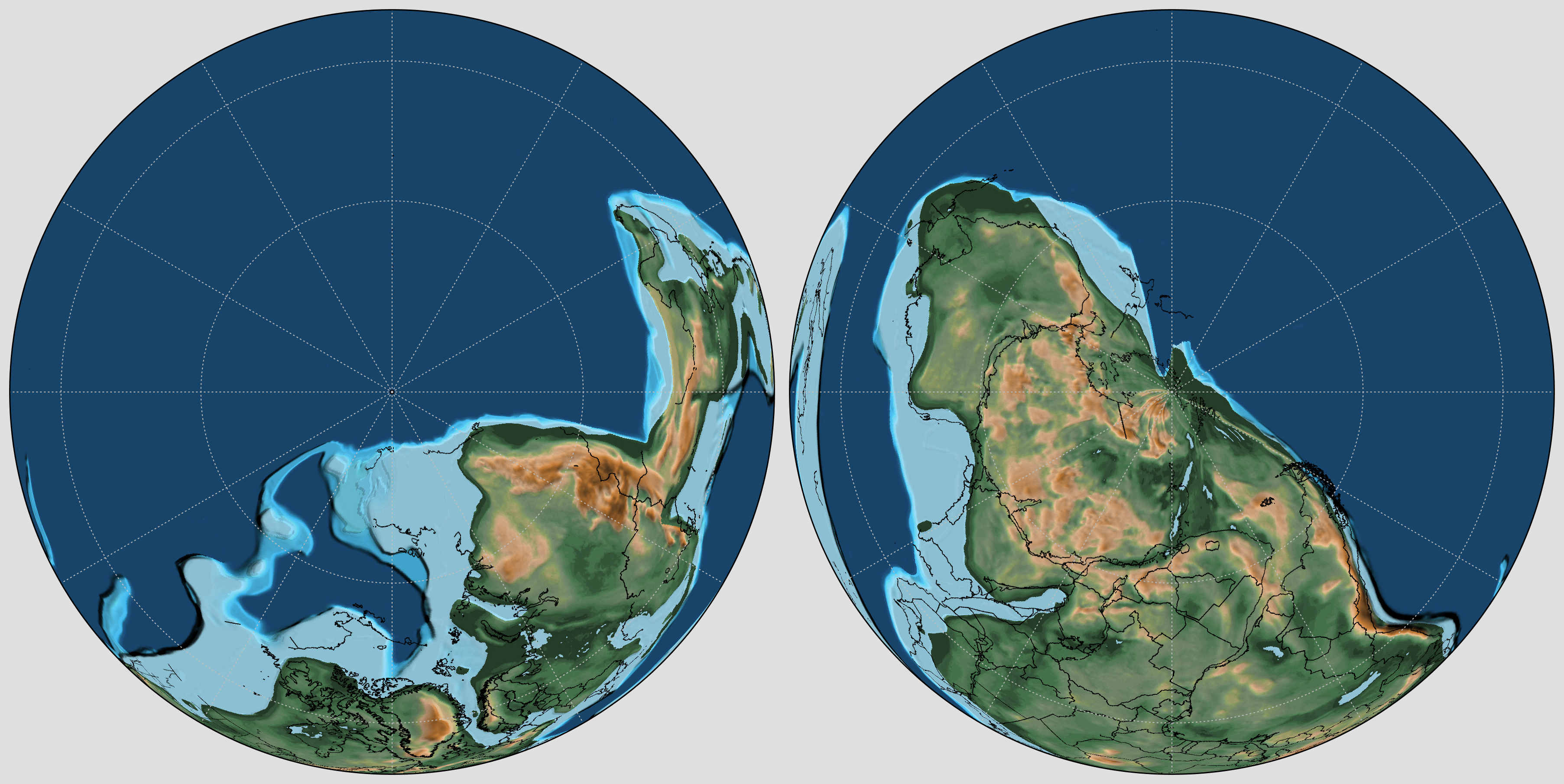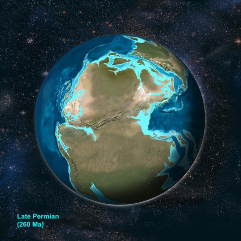 | ロナルド・ブレイキー博士(米国コロラド台地ジオシステム社、北アリゾナ大学名誉教授)から有償で提供していただいた大陸復元図(古地理図)に基づく(These movies are based on materials of the paleogeography maps by Dr. Ronald Blakey, Colorado Plateau Geosystems, Inc.)。 | |