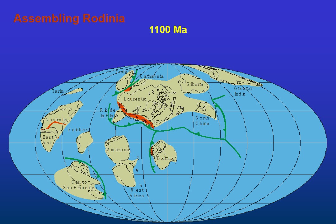 地質学的証拠から復元された11億年前から5億3000万年前までの大陸移動