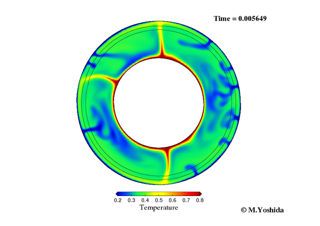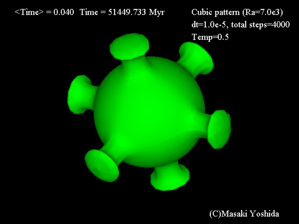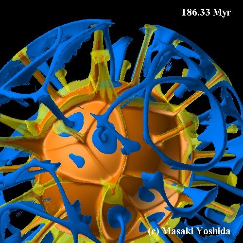 三次元球殻内のマントル対流