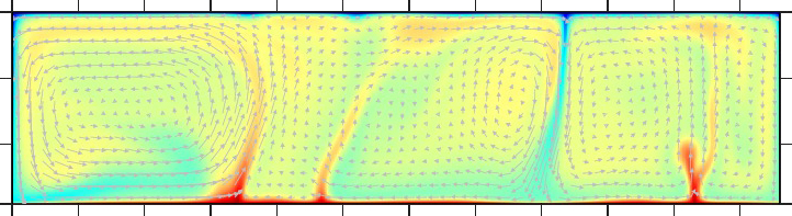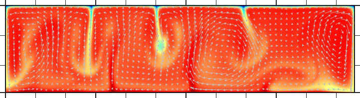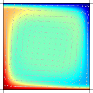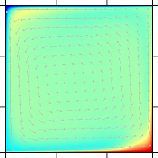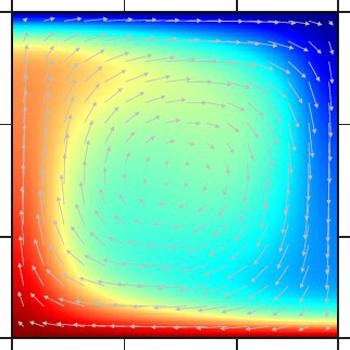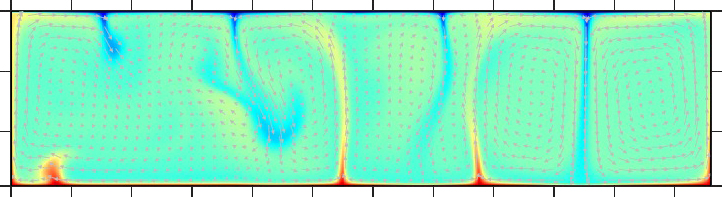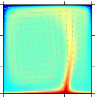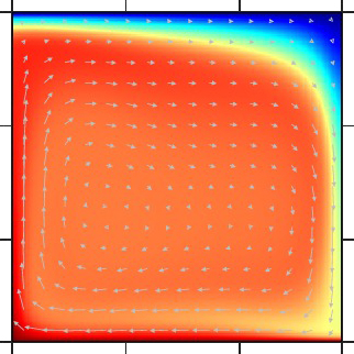 レイリー数=7×103、「六面体型」定常対流 |